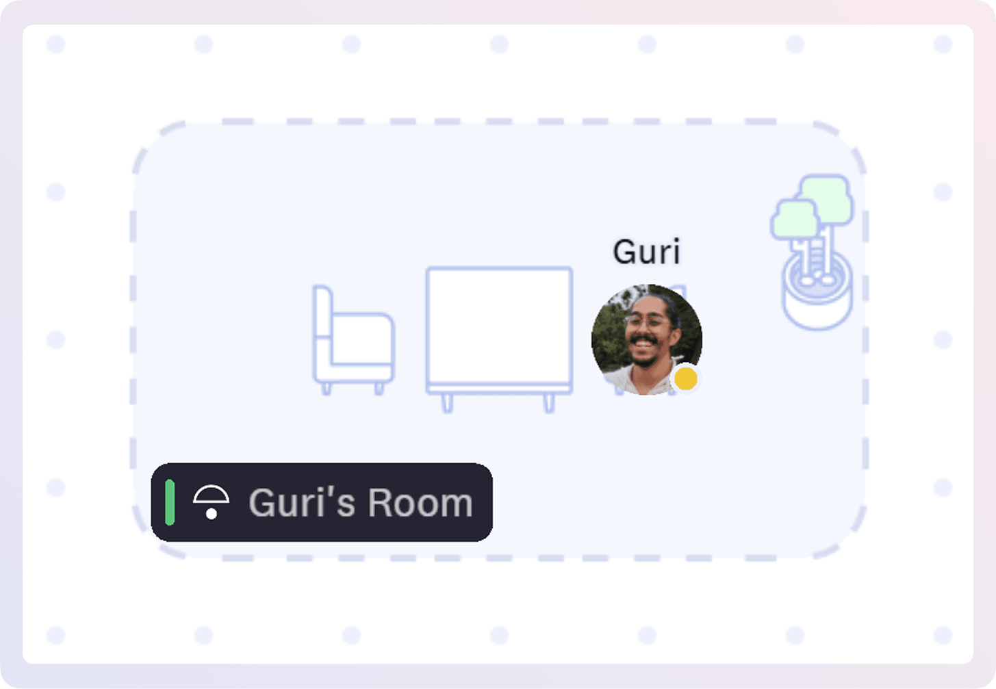When you're at your personal room with access set to Open, teammates can start conversations instantly by walking up to your desk or clicking your room on the floor plan. Calls start automatically—no link sharing, no platform switching, no scheduling friction.