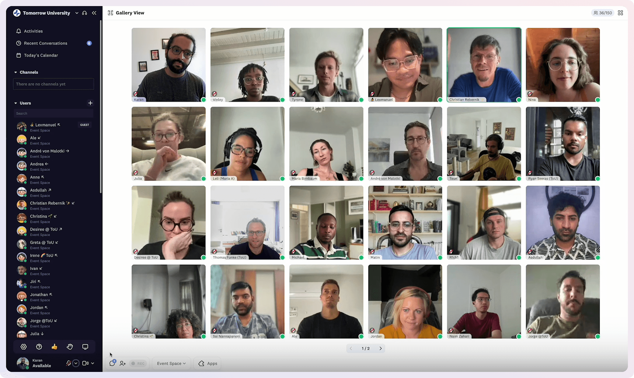- Ability for presenters to have a back stage room for discussions, or private channels for messaging amongst themselves.