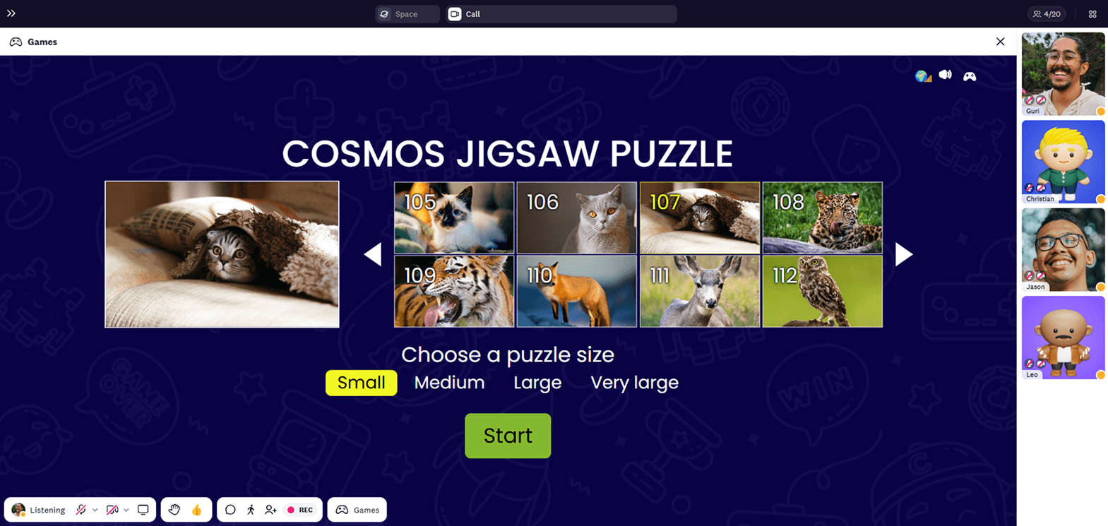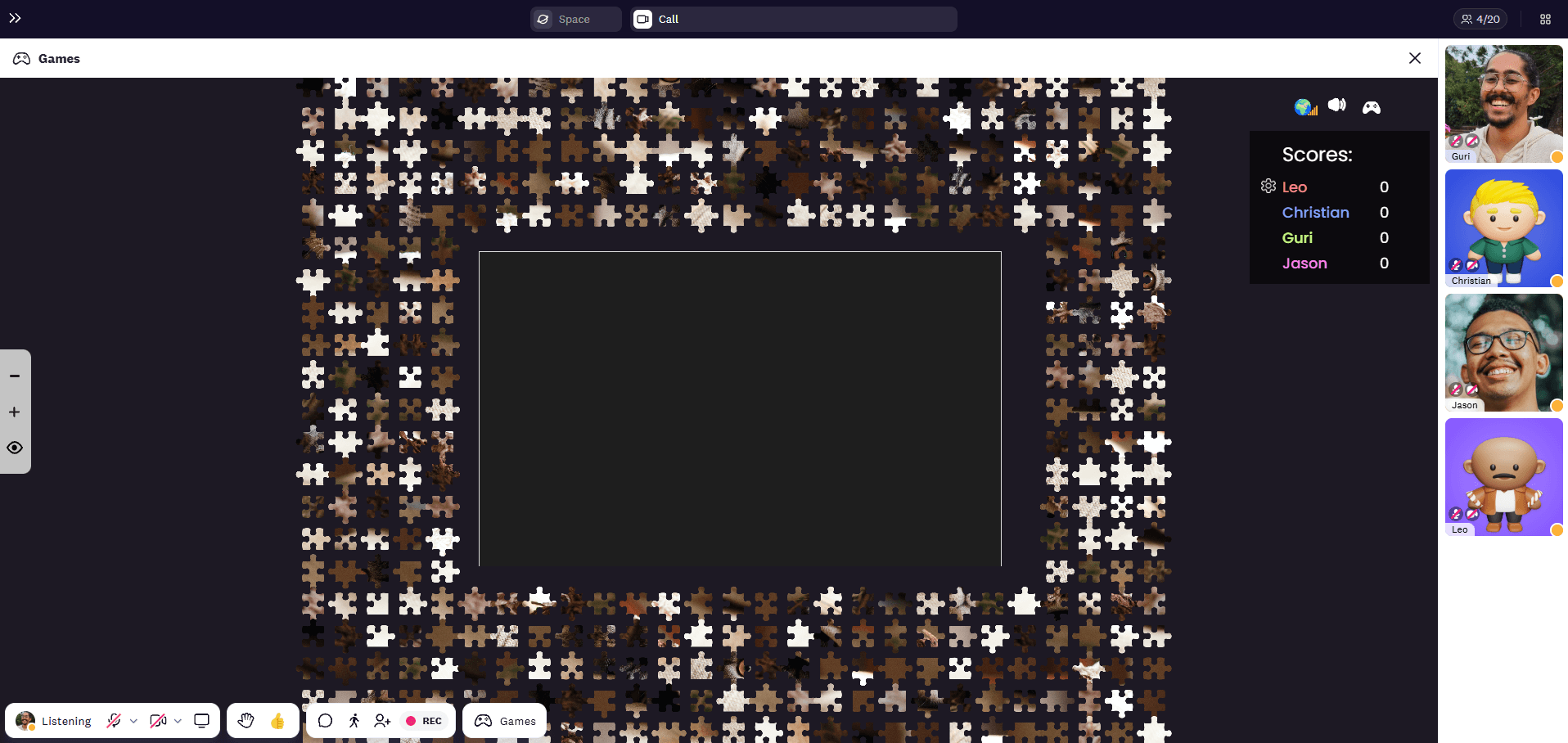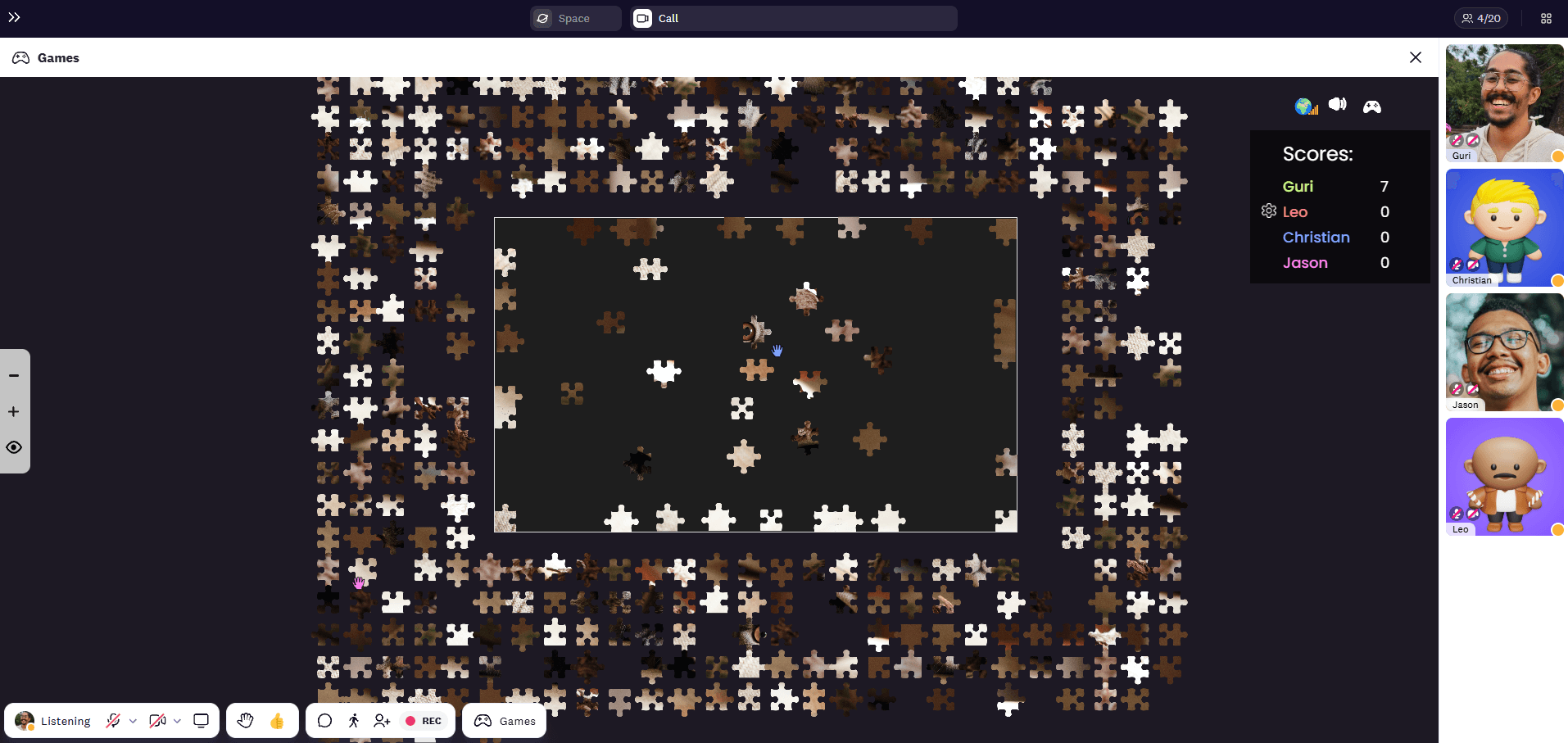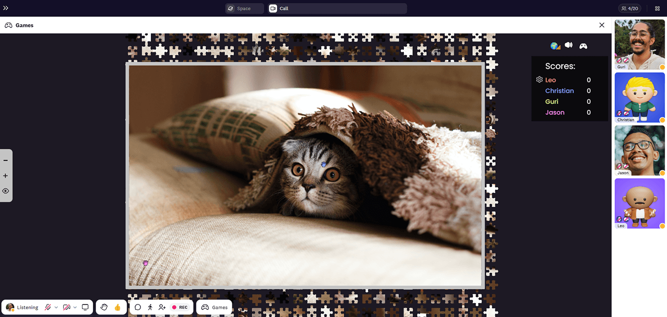 2. Start the game, and everyone picks and drags the pieces to the correct spot. You can see everyone’s cursor to feel like everyone is solving the puzzle together.