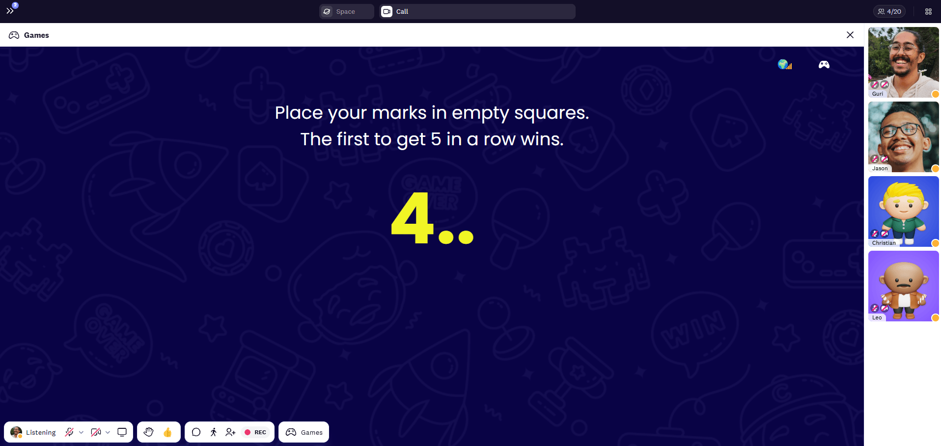 3. Press “X” on your keyboard or click on “Games” in the toolbar to start a game.
