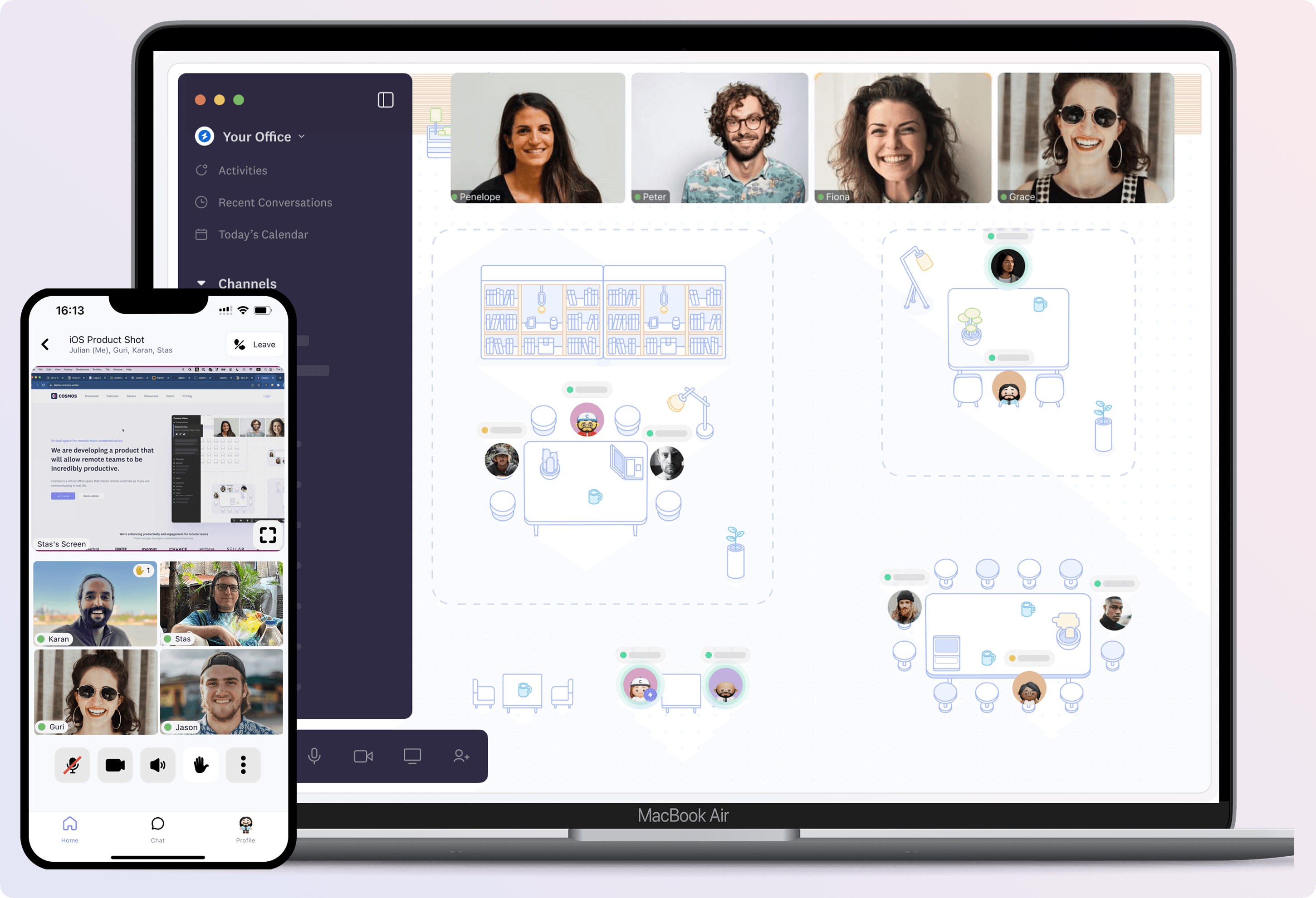 - Connect large remote teams seamlessly - As distributed teams grow, Cosmos enables everyone to come together in a spatial environment where you can change group participants rapidly, seeing people in under 50 milliseconds rather than waiting 30+ seconds for calls to connect.