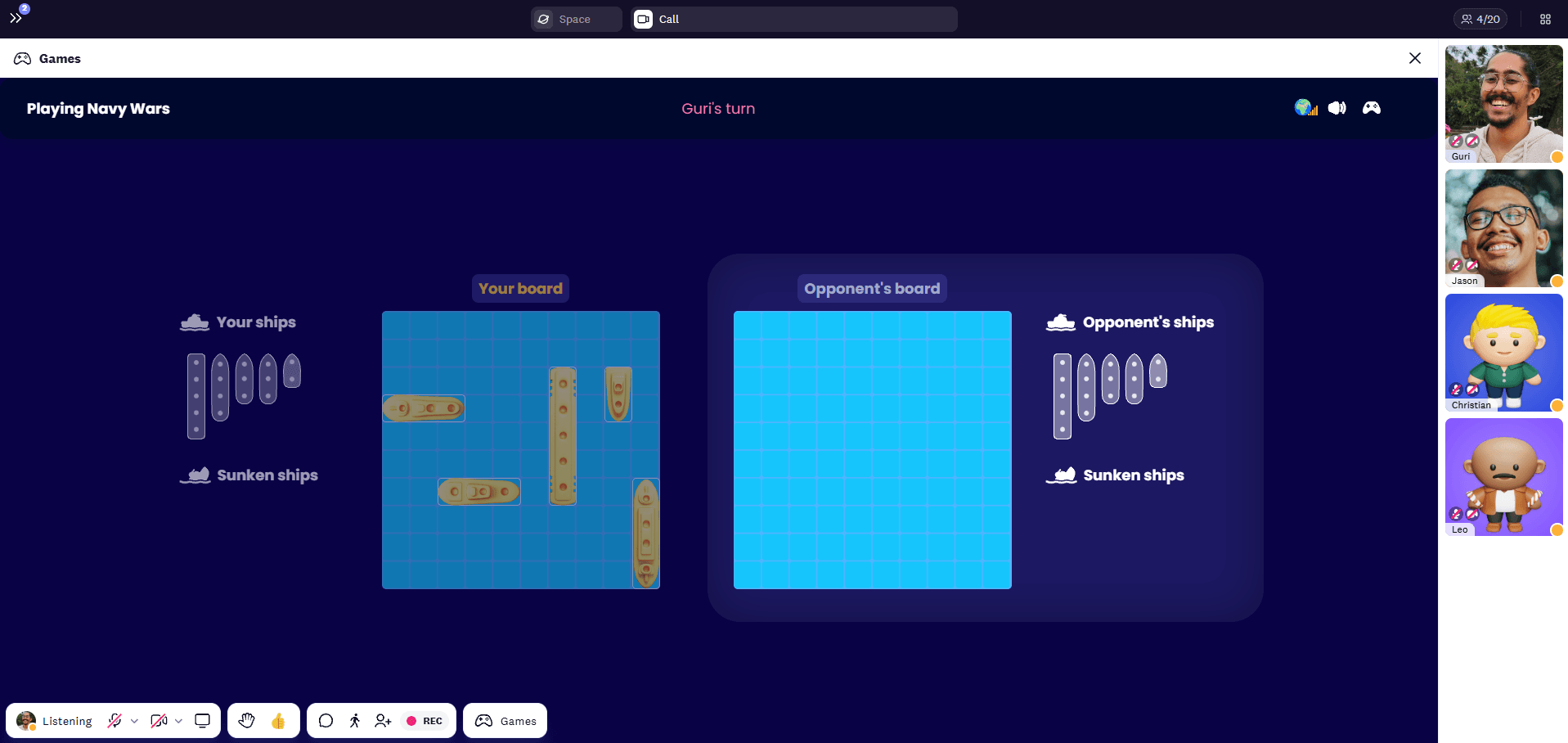 3. If you hit an opponent’s ship, you go again, if you miss the shot, the opponent gets to play their turn.
