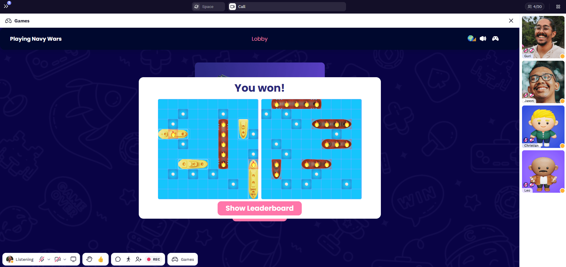 4. At the end of the game, whoever sinks all the opponent’s ships wins the game!