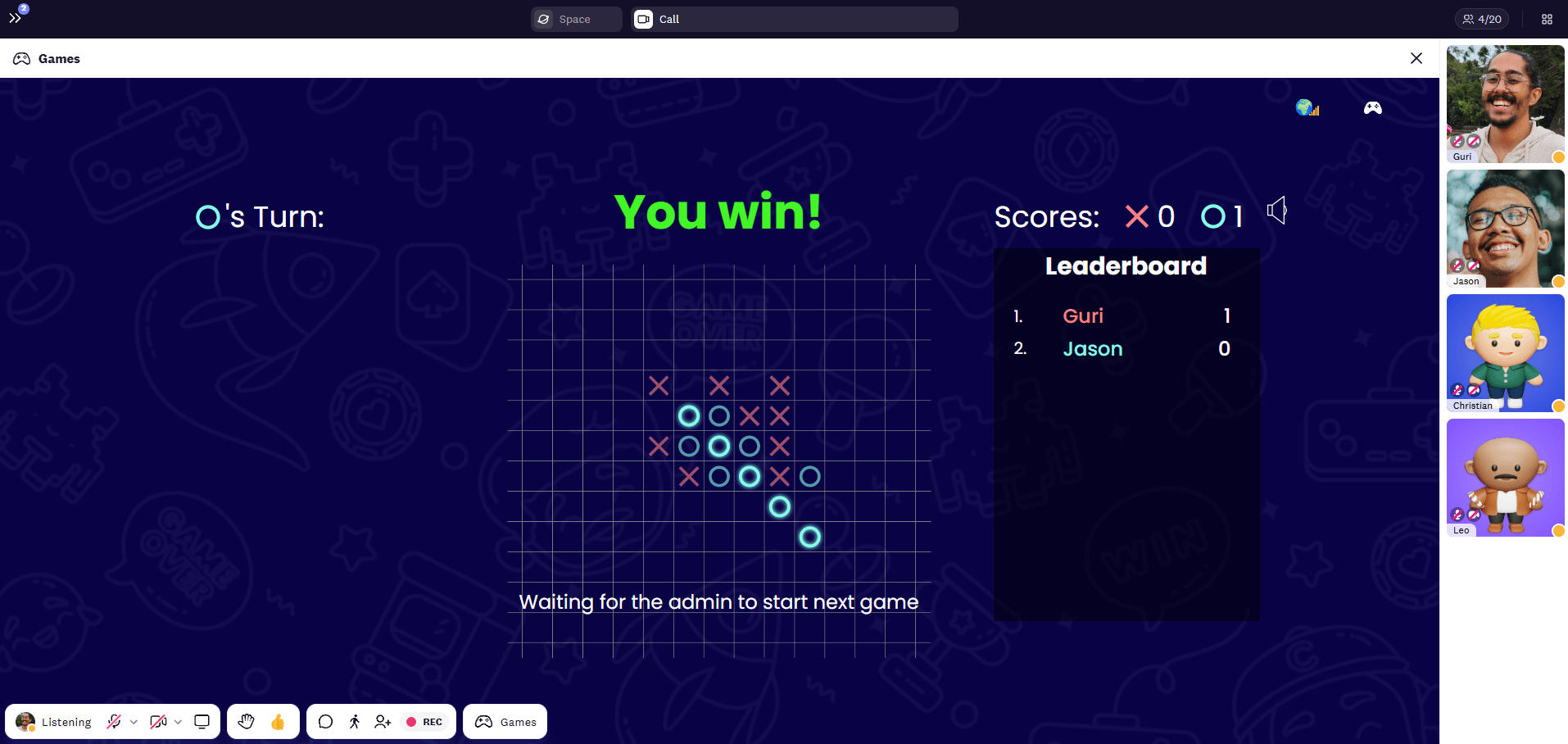 3. Press “X” on your keyboard or click on “Games” in the toolbar to start a game.